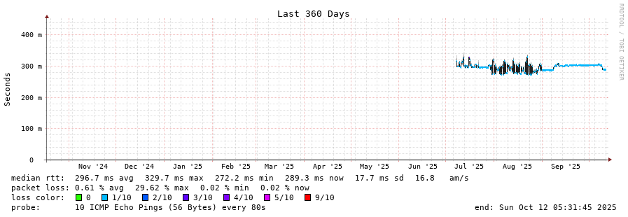 18 > 61.88.33.9 (61.88.33.9) [AS7474] 290.442ms 289.485ms 290.174ms
