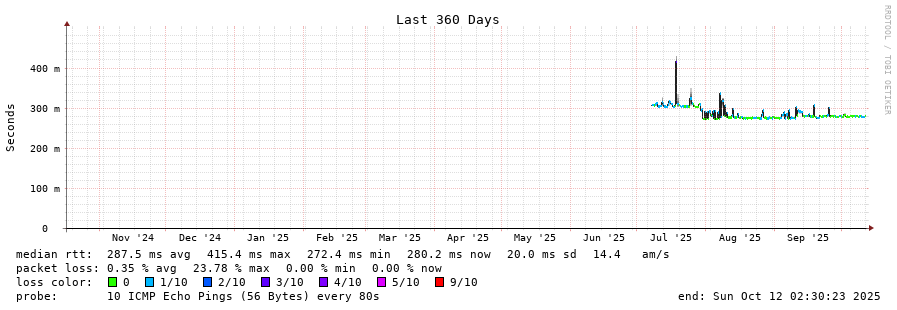 12 > 61.88.33.14 (61.88.33.14) [AS7474] 281.351ms 280.848ms 281.227ms