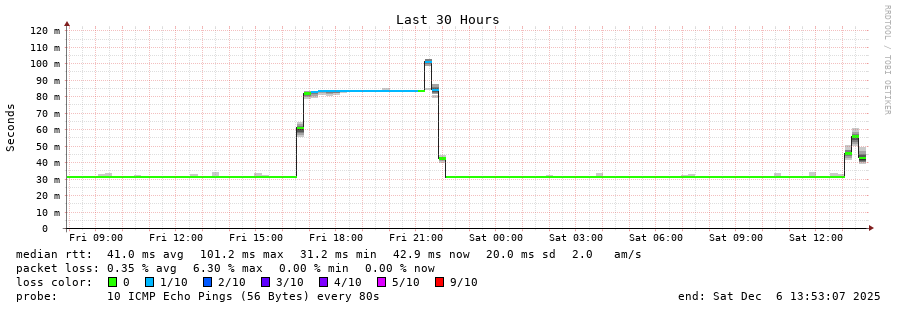 traceroute to 41.226.21.100 (41.226.21.100), 30 hops max, 60 byte packets - Generated at 2025-12-06 13:45:01