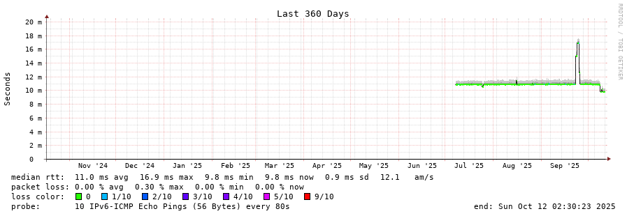 traceroute to 2a01:4f8:d0a:529e::2 (2a01:4f8:d0a:529e::2), 30 hops max, 80 byte packets - Generated at 2025-10-12 02:15:01
