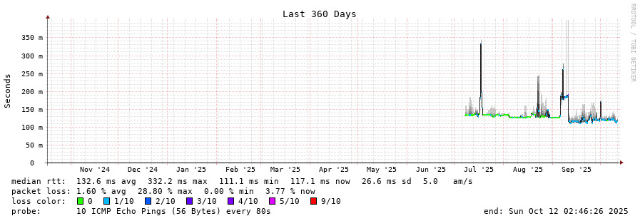 traceroute to 5.30.128.1 (5.30.128.1), 30 hops max, 60 byte packets - Generated at 2025-10-12 02:30:01