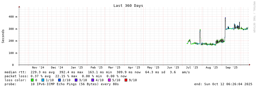 traceroute to 2402:1f00:8300:191:: (2402:1f00:8300:191::), 30 hops max, 80 byte packets - Generated at 2025-10-12 06:15:02
