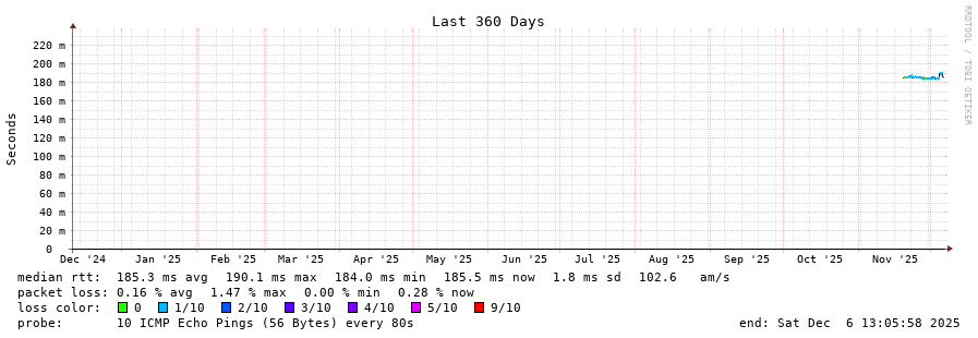 traceroute to 186.219.150.218 (186.219.150.218), 30 hops max, 60 byte packets - Generated at 2025-12-06 13:00:01