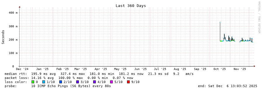 8 > 5.178.43.189 (5.178.43.189) [AS6762] 173.973ms 173.895ms 173.971ms