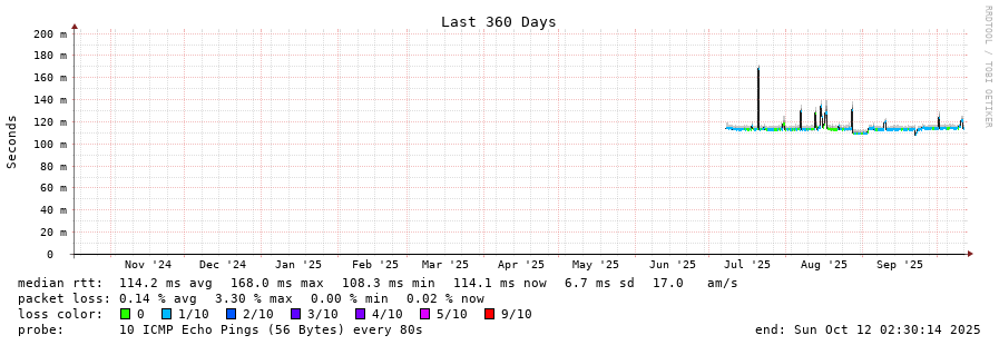 traceroute to 98.192.40.186 (98.192.40.186), 30 hops max, 60 byte packets - Generated at 2025-10-12 02:30:01